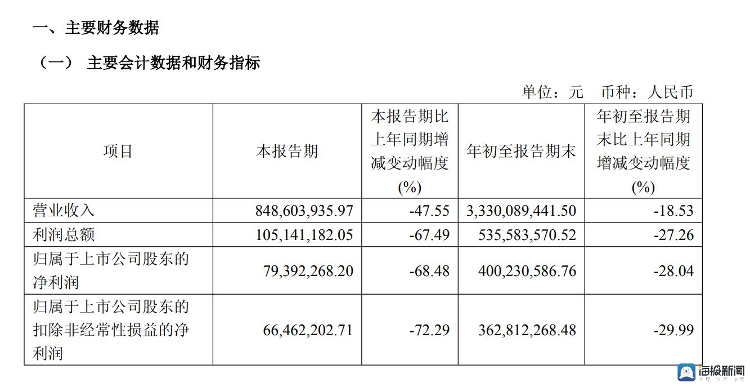 区域酒企成为三季度业绩“重灾区”,多家企业遭遇上市以来最严峻的业绩滑铁卢。10月28日晚间,口子窖发布的2025年第三季度报告显示,口子窖延续营收净利双降趋势,今年前三季度,公司实现营业收入31.74亿元,同比下降27.24%;实现归属于上市公司股东的净利润为7.42亿元,同比下降43.39%;实现经营活动产生的现金流量净额为-3.90亿元,同比下降208.91%。其中,公司第三季度实现营业收入6.43亿元,同比下降46.23%;归属于上市公司股东的净利润为0.27亿元,同比下降92.55%,远超市场最坏预期。