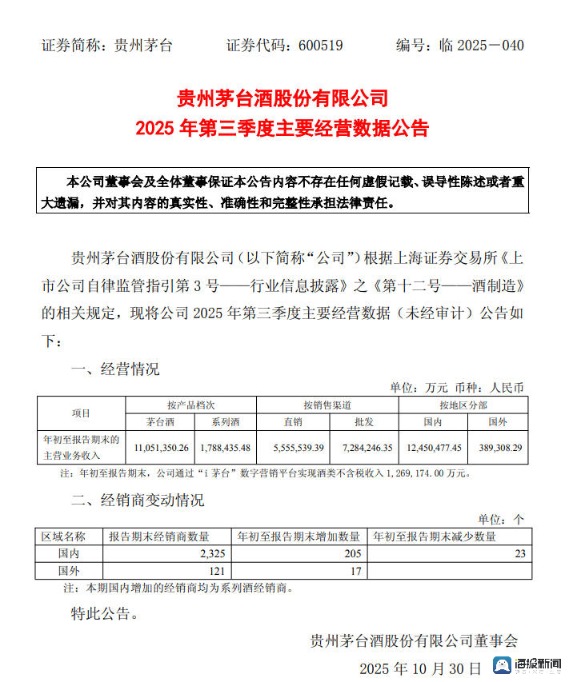 今年前三季度,贵州茅台实现营收1284.54亿元,同比增长6.36%;归母净利润646.27亿元,同比增长6.25%。记者注意到,年初,贵州茅台曾提出2025年总营收同比增长约9%的目标。按照年初的设定目标,贵州茅台需要在今年最后一个季度加速冲刺。