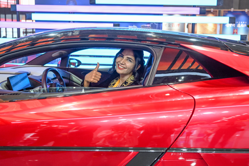 “太多高精尖的产品了,不过我最喜欢的还是中国的高铁,实在是太快太便捷了。”ELAHEH FAZEL是伊朗代表团的参展商,在上海从事贸易工作一年多了,由于在伊朗就开始学习中文了,普通话完全听不出口音。这是ELAHEH FAZEL第二次参加进博会,但说起进博会已经滔滔不绝,“这款比亚迪的仰望U9也很好,就是太贵了。”