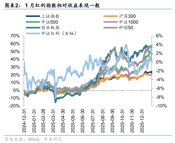 1月高股息板块表现有所修复,原因或在于:1)险资开门红力度强,新增资金有配置需求,OCI账户偏好红利资产;2)周期型高股息品种受益于涨价逻辑表现较优,石油石化、钢铁、煤炭板块在高股息内部表现相对较优。