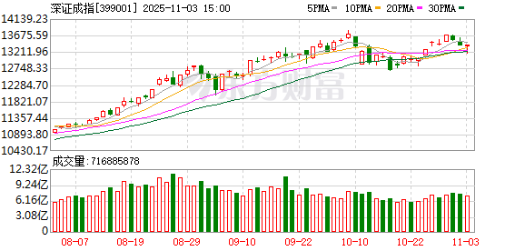 A股三大指数今日集体小幅回调,沪指失守4000点大关。截止收盘,沪指跌0.25%,收报3997.56点;深证成指跌0.36%,收报13404.06点;创业板指跌0.51%,收报3208.21点。沪深两市成交额19991亿,较昨日缩量562亿。