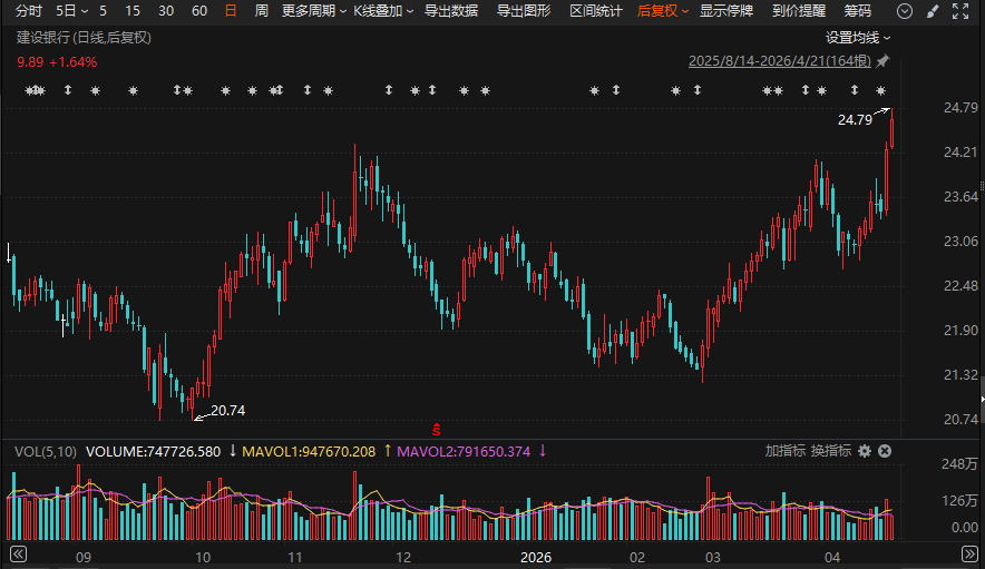 银行股早间强势上攻,板块指数逆市高开高走,盘中一度涨逾1%。杭州银行、建设银行创历史新高(复权,下同),中信银行、江苏银行、齐鲁银行、成都银行等纷纷创年内新高。